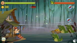 ロッキングチェアに座った、おじさんが持つショットガンを使って、沼から洗われるワニやカメなどをシューティングするゲームアプリです。