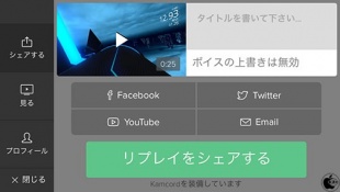 録画した動画は、facebook、Twitter、YouTubeに投稿することが出来るようになっています。