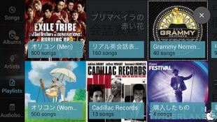 ミュージックは、アルバムアートワークが表示され、好きな曲のアルバムアートワークをタップすると曲の再生が始まります。