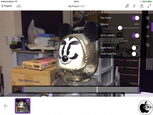 オーディオ調整機能も搭載されていて、音量調整、オーディオのフェードイン/フェードアウトも加えることが出来ます。