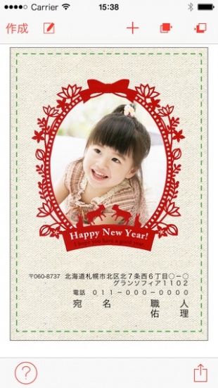 年賀状の両面が作成・印刷できるアプリで、AirPrint対応のプリンターがあれば、iPhoneやiPadを使って、手軽に年賀状づくりが楽しめます。
