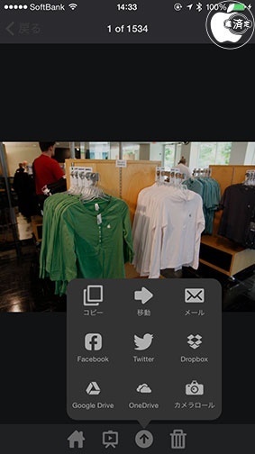 また、Facebook、Twitterに投稿したり、Dropbox、Google Drive、OneDriveにアップロードしたりすることも可能になりました。