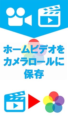 ホームビデオ内の動画ファイルを、カメラロールに転送して保存することができるアプリです。