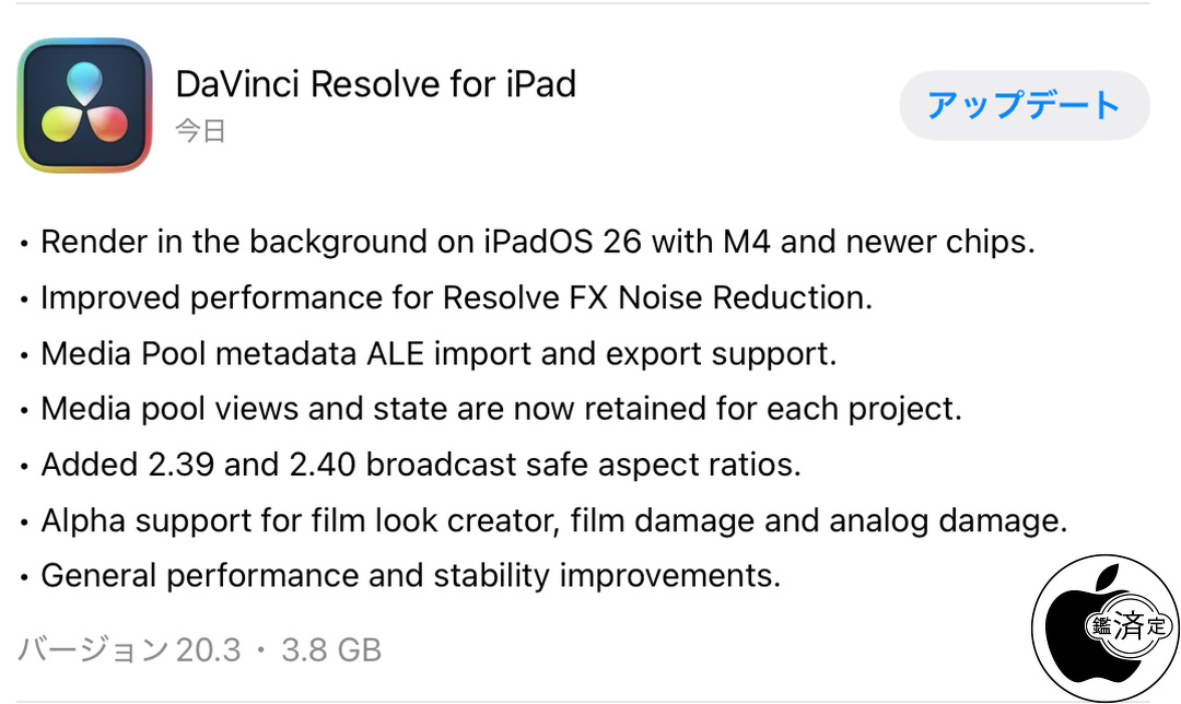 Blackmagic Design、M4チップ以降のiPadでバックグラウンドレンダリングに対応したiPad用動画編集アプリ「DaVinci Resolve for iPad 20.3」を、App Storeにて配信開始