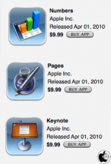 2010年04月02日(金) iPad App Store#Apple#iPad#iWork#Keynote#Numbers#Pages Apple、App Storeで、iPad専用iWorkアプリの販売を開始(US) ※本サイトは、アフィリエイト広告および広告による収益を得て運営しています。購入により売上の一部が本サイトに還元されることがあります。 Appleが、App Storeで、iPad専用iWorkアプリ「Numbers」「Pages」「Keynote」を各9,99ドル(1,200円)で販売を開始しています。 なお、現在、日本のApp Storeでは購入出来ず、US App Storeでのみ販売されています。