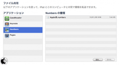 Numbers ‘09で作成したファイルを取り込むには、iTunesのアプリタブの下の方にあるファイル共有でNumbersを選択し、そこにファイルをドラッグすると直ぐに転送されます。