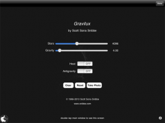 Scott Snibbeが、iPhone/iPod touch/iPad用インタラクティブ小宇宙アプリ「グラヴィリュクス」を、App Storeにて無料配付を開始していたので試してみました。