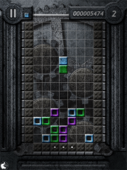 iPhoneアプリ「Compression」のiPad版で、落ちものパズルゲームアプリですが、回りの壁が次第に狭くなるのが特徴です。