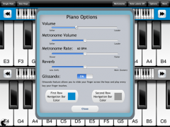 ピアノオプションとして、音量、メトロノーム調整、リバーブ調整などが行えるようになっています。