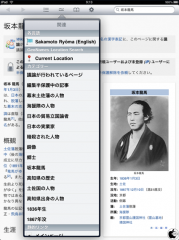 関連アイコンをタップすると、英語ページや、現在地情報を元にした関連場所、関連カテゴリーなどが表示され、さらに話題を広げる事が出来ます。