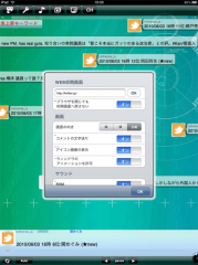 設定アイコンをタップすると、ブラウザー表示の初期画面設定や、画面の向き、コメントの文字送り、BGM設定などを行う事が出来ます。