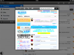 タイムライン上にあるURLをタップすると、アプリ上にブラウザー画面が表示され、大きな画面で内容を確認することが出来ます。