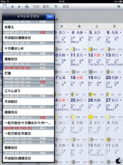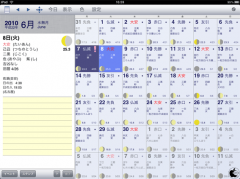 2010年06月07日(月) iPad App Store#e六曜_HD#iPad iPad用暦カレンダーアプリ「e六曜 HD」を試す ※本サイトは、アフィリエイト広告および広告による収益を得て運営しています。購入により売上の一部が本サイトに還元されることがあります。 e六曜 HD マイクロテックが、iPad用暦カレンダーアプリ「e六曜 HD」を、App Storeにて販売を開始していたので試してみました。 iPhoneアプリ「e六曜」のiPad版です。 iPhone版同様に、祝祭日や干支、六曜などの表示に加え、ユーザー自身でスケジュールの設定を行う事が出来るようになっています。 月間表示画面上に日表示画面が表示されるようになり、別画面に切り替えなくても済むようになっています。 横表示の場合は、左側に日表示画面が、右側に月間表示画面が表示されます。 画面左上のイベントリストボタンをタップすると、表示されている月のイベントを一覧表示することが出来るようになっています。 ↓の評価ボタンを押してランキングをチェック!