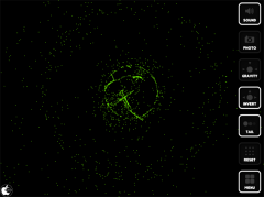 アプリを起動したら、画面を指でタップすると、無数の点が美しい軌跡を描いて動き出します。