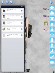 右側のアイテム種類ボタンをタップし、表示されるアイテムをダブルタップすると、マネキン人形に着せることが出来ます。