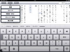 フォントをタップすると、楷書体、ゴシック体、明朝体、衝山毛筆体に変更することも出来ます。