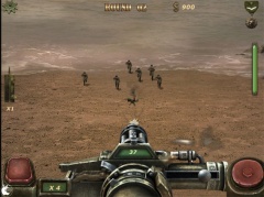 iPhoneアプリ「CF Defense」のiPad版で、海岸線に上陸してくる敵を機関銃で打ち倒しまくるFPSゲームアプリです。
