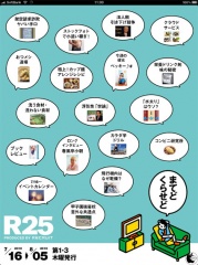 すでに、iPhoneアプリ版「オトコが進化する情報マガジン R25 for iPhone」がリリースされていて、iPad版も吹出し式の目次が採用されています。