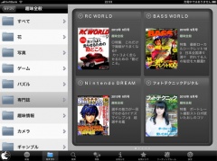 カテゴリをタップすると、大きなジャンルが一覧表示され、気になるジャンルをタップし、細かな分類をタップすると、そのジャンル分類に該当する雑誌の表紙が表示されます。