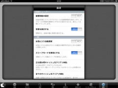 設定では、縦横移動の固定、背景表示、お気に入り自動更新、キャッシュクリアなどを行う事が出来るようになっています。