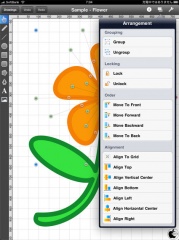 オブジェクトのアンカーポイントが表示された状態で、画面上の四角いアイコンをタップすると、オブジェクトをグループ化し、グループオブジェクトを揃える方法を選択することが出来ます。