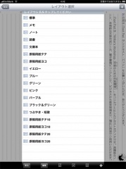 情報ボタンのレイアウト選択をタップすると、メモ、ノート、文庫本、原稿用紙タテ/ヨコなどのレイアウトに切り替える事が出来ます。