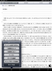 編集アクションでは、任意のテキストを選択した場合、選択したテキストのカット/コピーを行うことが出来ますが、任意のテキストが選択されていない場合は、改行までの1段落に対して、カット/コピーアクションとなります。