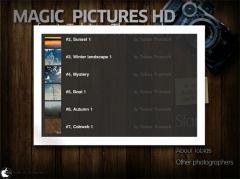 テーマを選択すると、美しい写真と、その写真に対するインタラクティブエフェクト表示と、サウンドが再生されます。