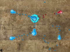 ゲームは、プレイヤーの青い大砲から出る弾を使って、相手の赤い大砲を青く染め、全ての大砲をプレイヤーの色に染めていきます。