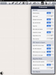 設定には、手描きスムージング、スナップグリッド、PDF出力などの細かな設定に加えて、Evernoteとの同期機能も設定することが出来るようになっています。