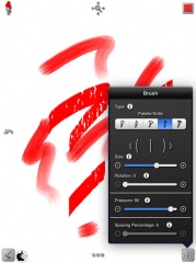 このアプリの特徴は、油絵筆として用意されている、フラット(平筆)、ラウンド(丸筆)、ファン(扇形)、パレットナイフ、パレットの塗りを再現している点にあると思います。