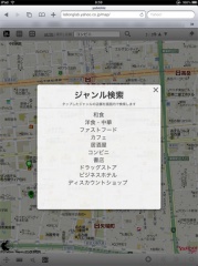 さらに4つの四角で表されたジャンル検索アイコンをタップして、ジャンルに該当する店舗検索を行う事が出来るようになっています。