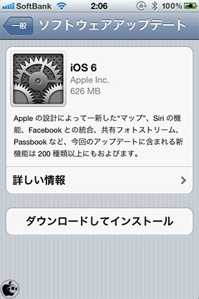 Appleが、iTunes経由または、iOSデバイスのソフトウェア・アップデート経由で「iOS 6.0 ソフトウェア・アップデート」の配布を開始しています。
