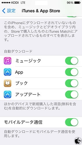 iOS 7:自動ダウンロードの「アップデート」設定を変更し、データ通信量を下げる
