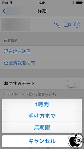 この機能は、1時間、明け方まで、無期限の3段階から選択することが可能です。