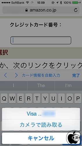iOS 8のSafariで、Amazonなどのインターネットショッピングを利用して、アカウント設定で、クレジットカード入力を行なう場合、クレジットカードをカメラで撮影して、カード番号と名前を認識し、自動入力することが出来るようになりました。