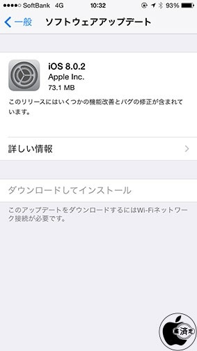 Appleが、iTunes経由または、iOSデバイスのソフトウェア・アップデート経由で「iOS 8.0.2ソフトウェア・アップデート」の配布を開始しています。