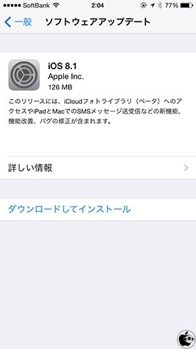Apple、新機能、機能改善、バグ修正などを行なった「iOS 8.1アップデート」を配布開始