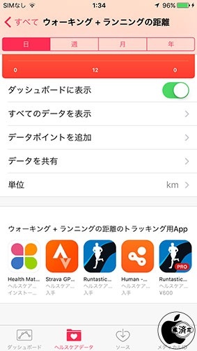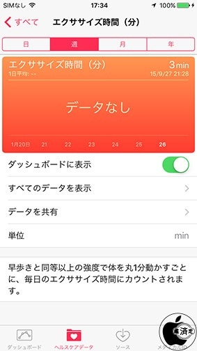 2016年03月22日(火) iOS#iOS9#ヘルスケア iOS 9.3:ヘルスケアがApple Watchのアクティビティ連携可能に、関連アプリ表示機能も追加 ※本サイトは、アフィリエイト広告および広告による収益を得て運営しています。購入により売上の一部が本サイトに還元されることがあります。 ヘルスケア iOS 9.3から、ヘルスケアがApple Watchのアクティビティとの連携が可能になりました。 これまでも連携可能な項目にApple Watchからの測定値は反映されていましたが、さらに、ムーブ、エクササイズ、スタンドのデータやゴールも表示されるようになりました。 新しい項目として、早歩きと同等以上の強度で体を丸1分動かすごとに、毎日のエクササイズ時間がカウントされる「エクササイズ時間(分)」が追加されています。 各項目に対応したアプリがどれかが、項目の画面下に表示されるようになっています。 これまで、各項目を探し出す事が大変面倒でしたが、それが容易になりました。