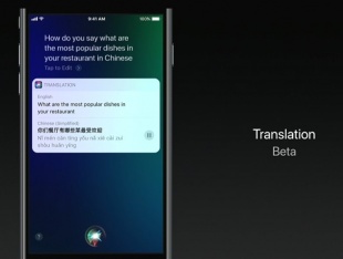 Siriは翻訳機能(beta)を搭載し、さらにSiriのAI機能が向上すると説明しています。