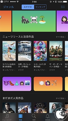 iTunes Storeの映画では、絵文字を使って作品を紹介するバナーが展開されています。