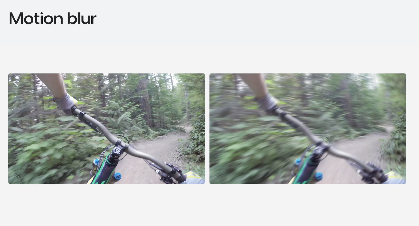 この例では、右側のビデオにモーションブラー効果を適用し、バイカーがかなり速いペースで走行しているように見せています。さらに、この効果は左側のビデオのぎこちない動きを滑らかにし、視聴感を高めています。