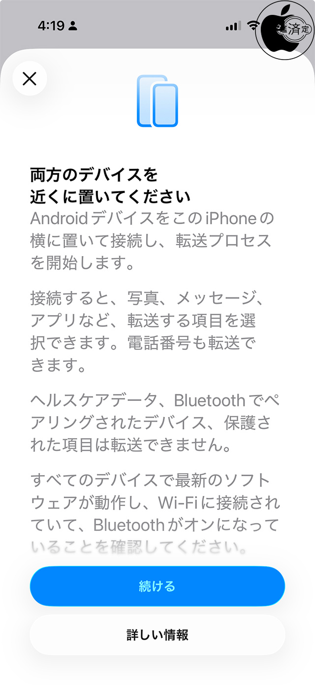 2026年02月12日(木) iOS#iOS26#iPadOS26#Android iOS 26.3/iPadOS 26.3:新しく「Androidに転送」機能が追加 ※本サイトは、アフィリエイト広告および広告による収益を得て運営しています。購入により売上の一部が本サイトに還元されることがあります。 iOS 26.3以降、iPadOS 26.3以降から、設定>一般>転送またはiPhone (iPad)をリセットに「Androidに転送」項目が追加されています。 両方のデバイスを近くに置き、転送プロセスを開始します。 接続すると、写真、メッセージ、アプリなど、転送する項目を選択できます。 電話番号も転送できます。 ヘルスケアデータ、Bluetoothでペアリングされたデバイス、保護された項目は転送できません。 すべてのデバイスで最新のソフトウェアが動作し、Wi-Fiに接続されていて、Bluetoothがオンになっていることを確認して下さい。