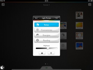 アプリからは今回点灯させた2つのhue電球が別々に認識されていて、アプリ上でビーチ、サンセット、ペンシル、スキーといったシーンを選ぶと、そのシーンに合わせた色でhue電球の光が変化します。