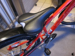サドルは、ワイドタイプのスポーティソフトサドルで、サイドプロテクター付き仕様で、子供向けの自転車では通常無い形のサドルが装着されています。