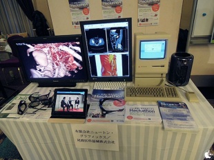 講演開始後は、ニュートン・グラフィックスのブースで、Appleのビジネス事例でも紹介されている隈夏樹氏が持ってきたMacintosh Plusと一緒に展示されていました。