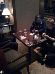 本日から2日間開催される「Adobe MAX Japan 2009」の会場ホテルグランパシフィック LE DAIBAにある「ルイロペス」で、前回参加のiPhone・iPod touch ラボのNakimoさんに加え、フォーカルポイントコンピュータ、TUNEWAREなどの代表をしている恩田フランシス英樹の日常の恩田さん、その恩田さんの友人で、大手Webサイトデザインを多数手掛けている泰地の松本さんが集まって、わいわい飲んでました。