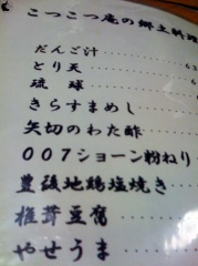 メニューには、大分の郷土料理がたくさん書いてあったのですが、その中に「矢切のわた酢」「007ショーン粉ねり」なる記載が。。