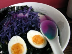 つぎは、店主いわく見た目が凄いらしい紫色ラーメンを食べてみました。