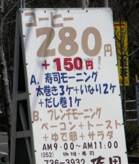 名古屋は、喫茶店のモーニングが凄いと良く言われますが、凄いのは、名古屋ではなくて、海部俊樹元首相の出身地、一宮市から北へ上がった岐阜市界隈ですが、名古屋市守山区にある「佐田」というお寿司屋さんで、モーニングがあると聞いて行ってきました。